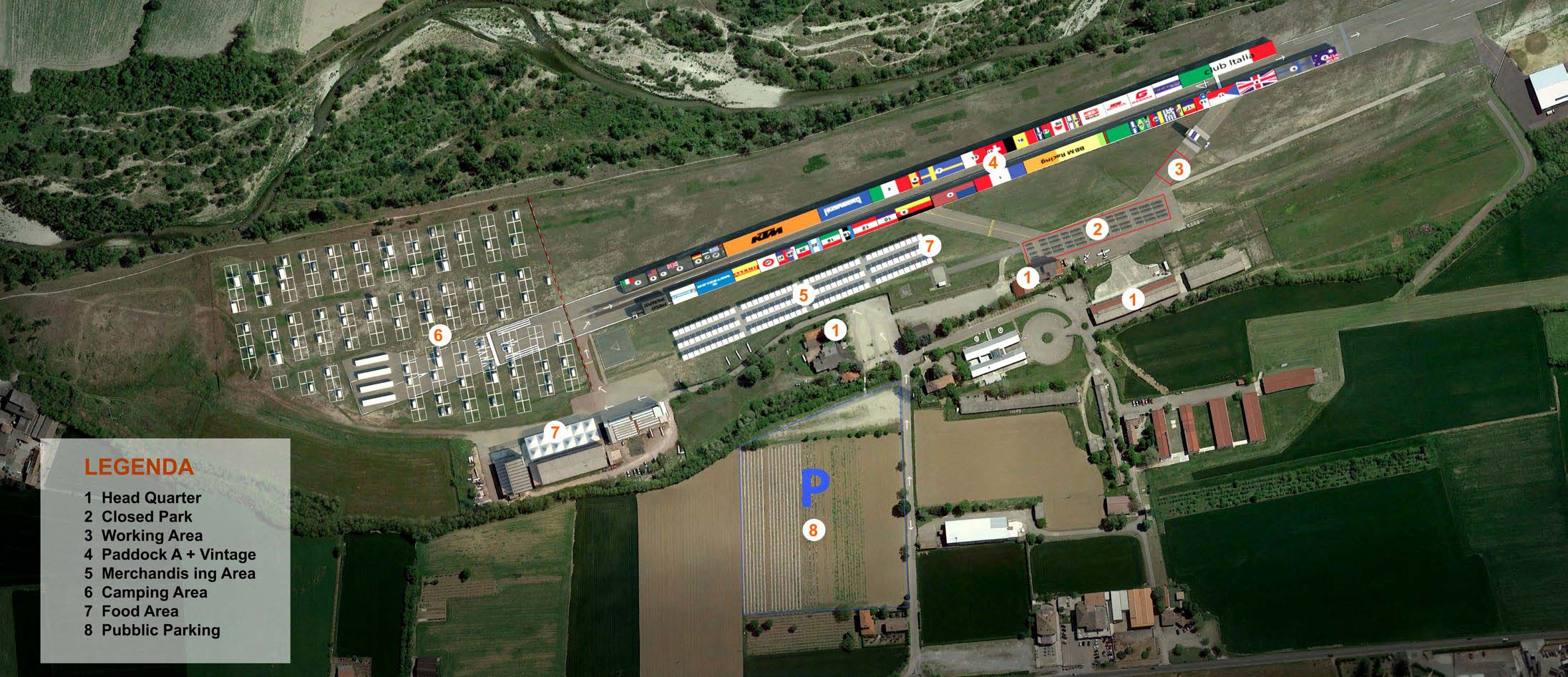 The paddock is located inside the touristic airport of Rivanazzo Terme, only 4 km from Voghera (40.000 inhabitants) and 35 km from Pavia. The most important dragster competition in Italy takes place every year on the surface of departure. It will be designed to offer a full range of services to enhance the enjoyment of our Six Days experience!